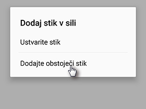 ![]() V pogovornem oknu izberite Dodajte obstoječi stik. |