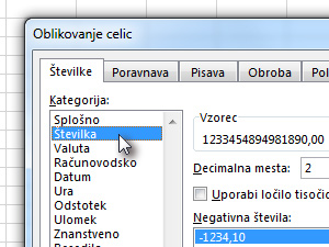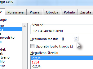 ![]() In polje Decimalna mesta nastavite na 0. Kliknite na gumb V redu. |