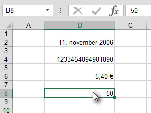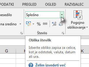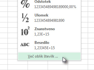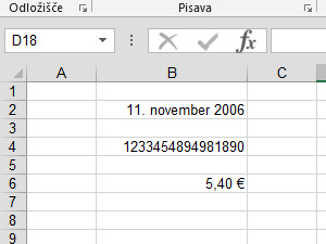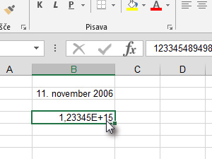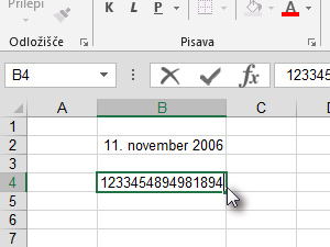 ![]() Številka bo dobila poseben znak na koncu, kar pomeni, da je številka predolga za določeno celico. Celica naj ostane označena. |
