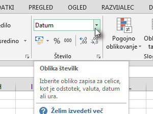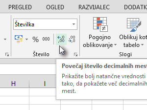 ![]() Sedaj pa pod izbrinikom kliknite na ikonico Povečaj število decimalnih mest. |