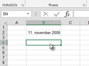 ![]() Datum bo po novem prikazan v drugi obliki. Kliknite sedaj na neko novo prazno celico. |