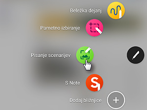 ![]() Potem pa iz telefona izvlecite pisalo S Pen in prikazal se vam bo menu. Če se vam menu ne prikaže, potem približajte pisalo k zaslonu in pritisnite na njem stikalo, da ga aktivirate. Izberite možnost Pisanje scenarijev. |