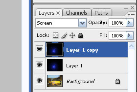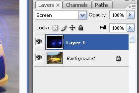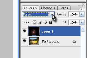 Layerju določite senčenje na Screen (glej sliko).