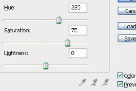 Označite Colorize. Potem pa nastavite Hue na 235 in Saturation 75. Kliknite na gumb OK. |