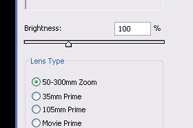 Odpre se novo okno. Brightness določite 100 % in Lens Type označite 50-300mm Zoom. Ne zaprite še okna... |