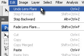 Kliknite zgoraj na Edit in izberite Undo Lens Flare.
