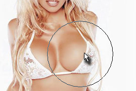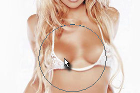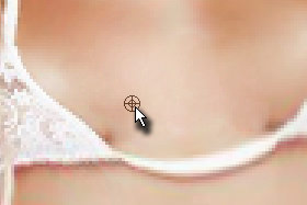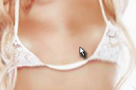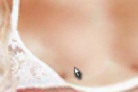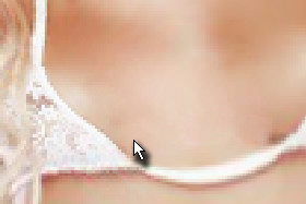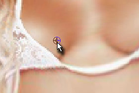Ker z orodjem Healing Brush Tool ne moremo popraviti senčenja, ki se drži spodnjega perila (mordca), bomo uporaibli naslednjo tehniko.