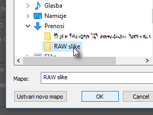 ![]() V novem oknu označite mapo, kjer se nahajajo fotografije v RAW formatu in kliknite na gumb OK. |