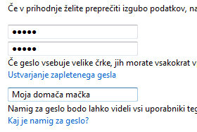 Naj bo geslo vsaj malenkostno zapleteno, saj bo onemogočalo dostop drugim do osebnih podatkov itd... V polje Vnesite namig za geslo pa vpišite nekaj, kar vas bo spomnilo na geslo, če ga boste pozabili. Kliknite na gumb Ustvari geslo. |