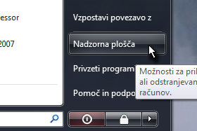 ...in izberite Nadzorna plošča.