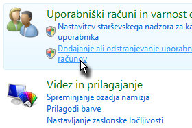 Pri polju Upporabniški računi in varnost družine kliknite na povezavo Dodajanje in odstranjevanje uporabniških računov.