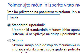Jaz sem vpisal Tačka. Potem pa označite Standardni uporabnik in kliknite na gumb Ustvari račun. Priporočam, da so vsi novi uporabniki Standarni uporabniki, tista oseba (to ste verjetno vi) pa naj edina ostane Skrbnik (ima večjo kontrolo nad računalnikom). |