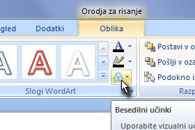 Potem pa kliknite na ikono Besedni učinki (glej sliko)... |
