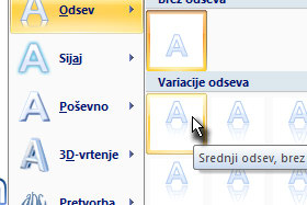 ..., izberite Odsev in nato poljubno variacijo (glej sliko).