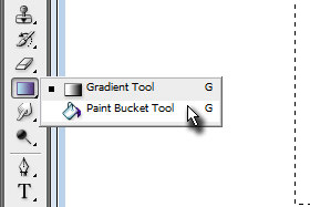 Izberite orodje Paint Bucket Tool (bližnjica je tipka G). Mogoče boste morali z miško držati na orodju Gradient Tool, da se vam prikaže omenjeno orodje. |