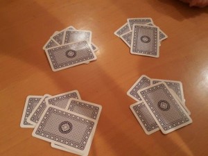 Če se vas bo igro igralo štiri ljudi, potem razdelite štiri karte enakih vrednosti in dodajte enega jokerja.