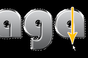 ![]() Sedaj pa z miško potegnite od zgornjega do spodnjega dela edla fonta (glej sliko), da boste pobaravali sredino črke z prej določeno barvo. |