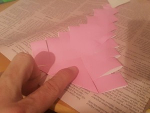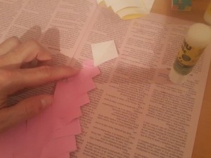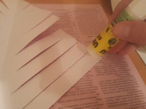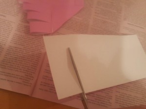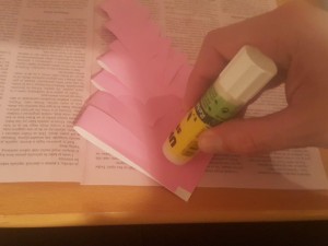 ![]() Sedaj dodajte malo lepila en krajec odrezanega papirja. |