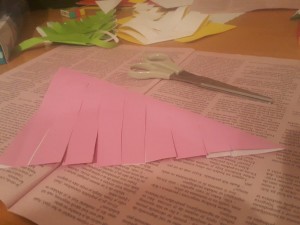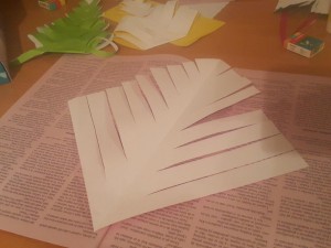 ![]() Nato pa prepognjen del začnite rezati s škarjami na približno 1,5cm široke trakove. |