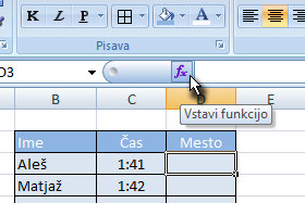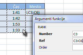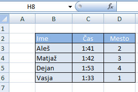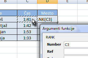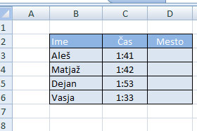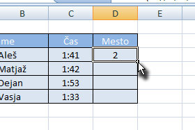 Excel je za Aleša izračunal, da je na drugem mestu.