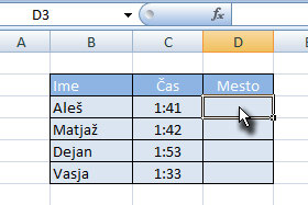 Sedaj pa kliknite na celico, ki se nahaja desno od Aleševega rezultata.