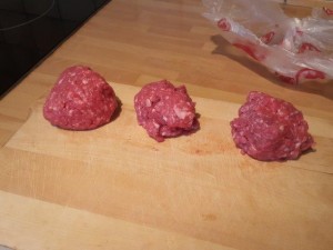 Pri mesarju kupite goveje mleto meso za toliko osebo, kolikor jih boste postregli. 15 dag mletega mesa je ponavadi dovolj za en hamburger.