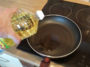Postavite ponev na kuhalno ploščo z nastavljeno srednje visoko temperaturo in dodajte malo olja. |