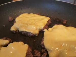 Ko bo meso dovolj pečeno, nanj položite cheddar sir in počakajte nekaj časa, da se malenkost stopi. Nato polpete s sirom postavite na nek krožnik oziroma umaknite. |