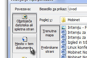 V polju Povezava kliknite na Mesto v tem dokumentu. |