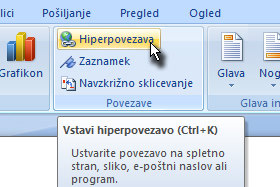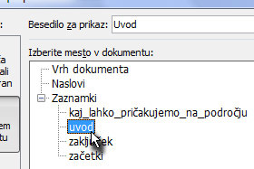 Word vas bo takoj premaknil na ustvarjen zaznamek oziroma hiperpovezavo. |