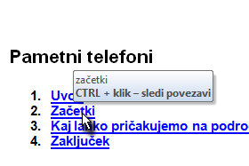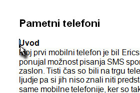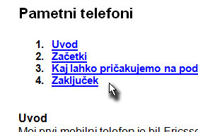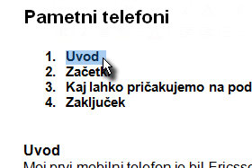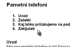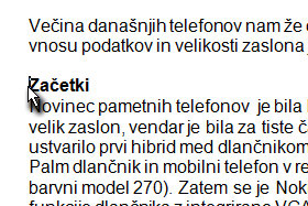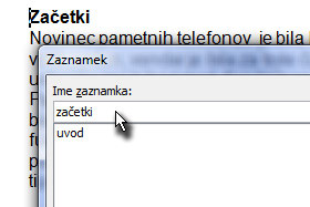 Ponovimo postopek določanja kraja zaznamka. Jaz sem tokrat kliknil pred podnaslovom Začetki. |