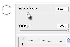Jaz sem določil Master Diameter (čopič) 36 px in Hardness na 0%. Pritisnite tipko ESC, da zaprete okno. |