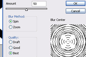 Odpre se novo okno. Amount določite 50, Blur Method Spin in Quality Best. Kliknite na gumb OK. |