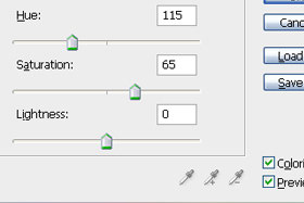 Označite Colorize, poigrajte se z drsniki in kliknite na gumb OK. Jaz sem določil Hue 115, Saturation 65 in Lightness 0. |