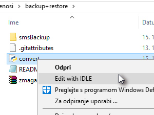 ![]() Potem pa kliknite na datoteko convert z desnim miškinim gumbom in izberite Edit with IDLE. |