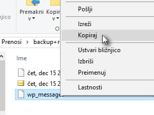 ![]() Sedaj pa novo ustvarjeno datoteko wp_messages kopirajte in prilepite na telefon z Androidom. Lahko si jo tudi pošljete preko e-pošte. |