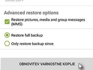 ![]() Tapnite na Obnovitev varnostne kopije in sporočila se vam bodo dodala. Jaz sem tako nazaj pridobil 6000 sporočil iz Windows Phone in jih dodal k obstoječim 2000 sporočilom na Androidu. Pa še kronološko mi jih je program lepo združil in uredil. |