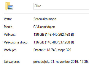 ![]() Prikaže se vam okno z informacijami, kjer vidite, koliko prostora vam slike zasedejo in koliko jih je vseh skupaj. V mojem primeru to predstavlja 136 gigabajtov in 18.746 fotografij. Zaprite okno. |