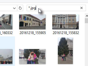 ![]() V okno za iskanje vpišite *.jpg in počakajte, da vam Windows prikaže vse slike. Če bi radi prikazali video posnetke, vpišite *.mp4 ali pa *.mov ... |