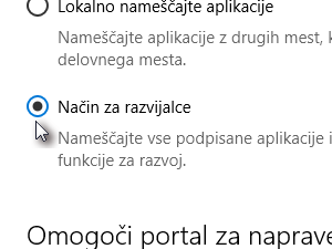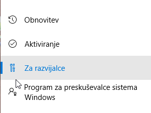 Nastavitve -> Posodobitve in varnost - Za razvijalce