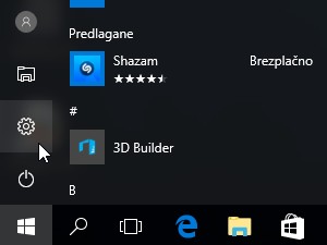 Da ugotovimo, katero verzijo uporabljamo, kliknemo gumb Start in odpremo Nastavitve.