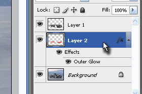 Kliknite zgoraj na Layer, Layer Style in izberite Outer Glow...