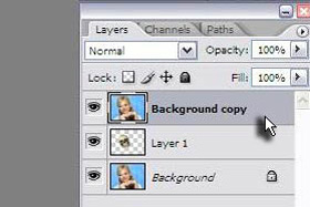 Sedaj bomo duplicirali Bacground layer in kopijo prestavili na vrh.