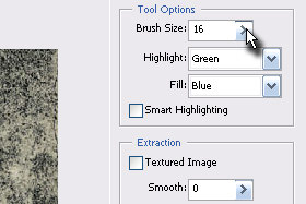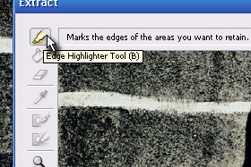 Kliknite zgoraj na Filter in izberite Extract... V oknu Extract izberite orodje Edge Highlighter Tool (bližnjica je tipka B). |