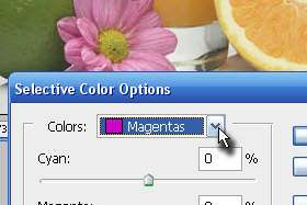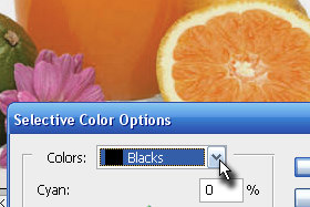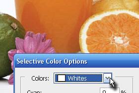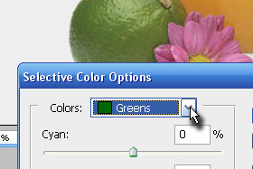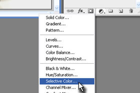 V paleti layerjev kliknite na ikono Create new fill or adjustment layer in izberite Selective Color...