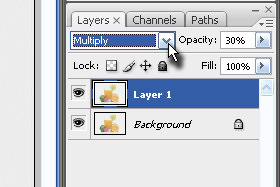 Sedaj pa nastavite senčenje na Multiply in Opacity na 30% (glej sliko).
