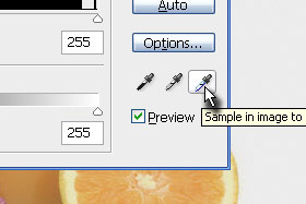 Pritisnite tipki CTRL + L in v novem oknu označite ikono Sample in image to set white point. |