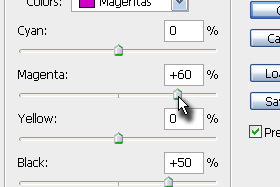 Jaz sem nastavil Cyan 0, Magenta +60, Yellow 0 in Black +50 %. |