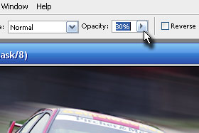 Sedaj pa z miško potegnite iz desne proti levi, da ustavrite preliv čez prej ustvarjeno masko (glej sliko).