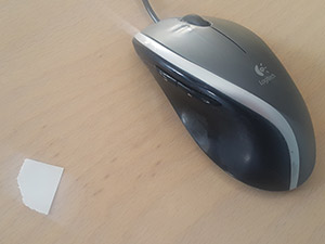 Pripravite lasersko miško in košček papirja, katerega postavite na varno podlago.